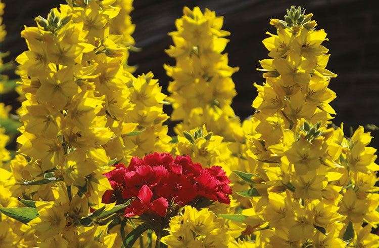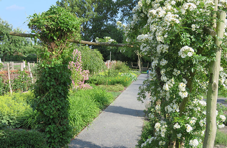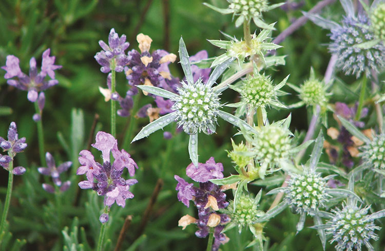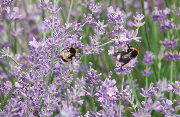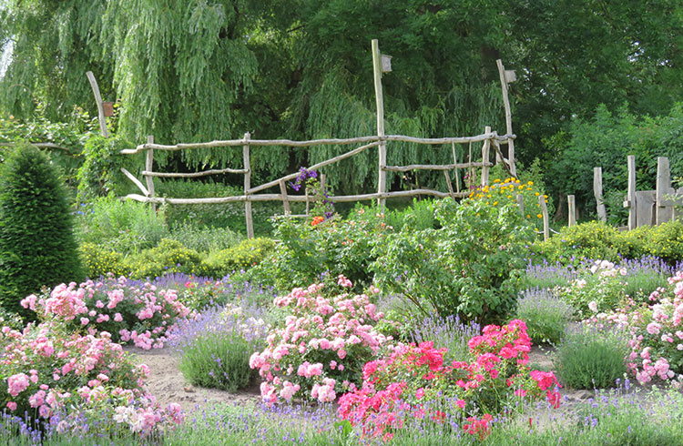 Der Sommer besticht mit seiner üppigen Rosenvielfalt, eingesäumt in duftende violette Lavendelpolster und umschwärmt von unzähligen