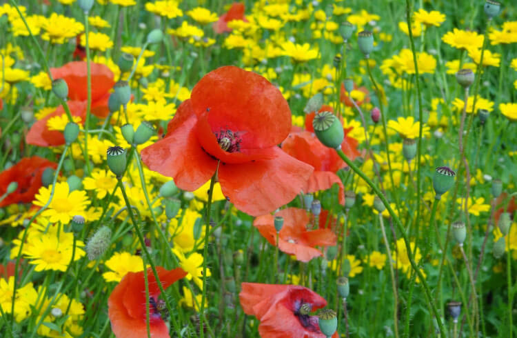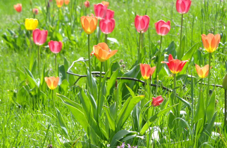Im Frühling begrüßen Sie im Eingangsbereich hunderte Tulpen, Narzissen und Krokusse. Im Quellmoor erfreut ein Blütenteppich von tausenden