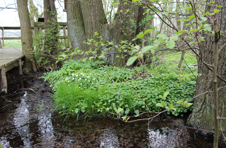 Das an der südlichen Grundstücksgrenze liegende Feuchtbiotop gehört mit einem kleinen Teich zum Quellgebiet der Jäglitz. Es handelt sich hier um