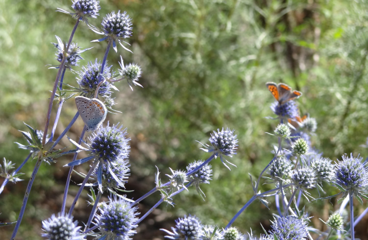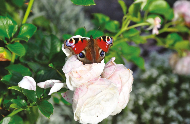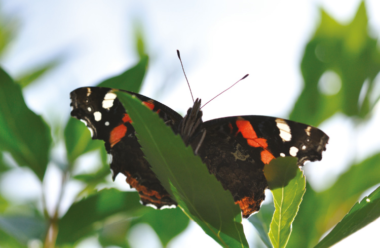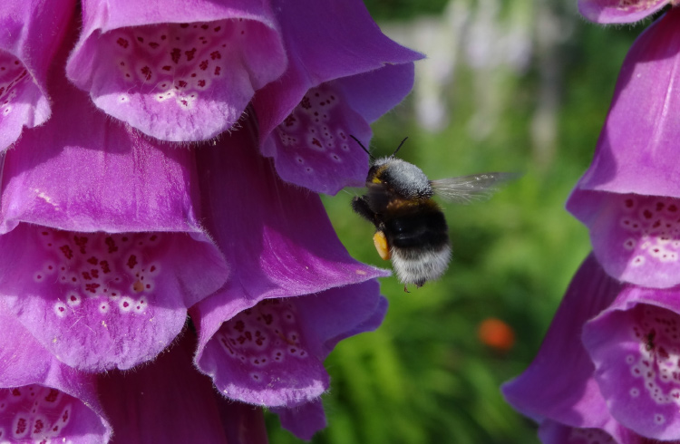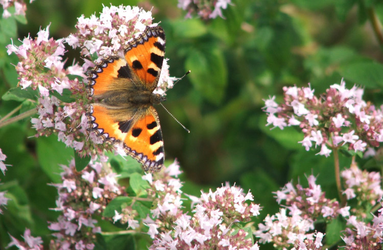 Blüten und Blättern verschiedener Pflanzen oder in der Erde. Unser kleines Paradies lockt viele